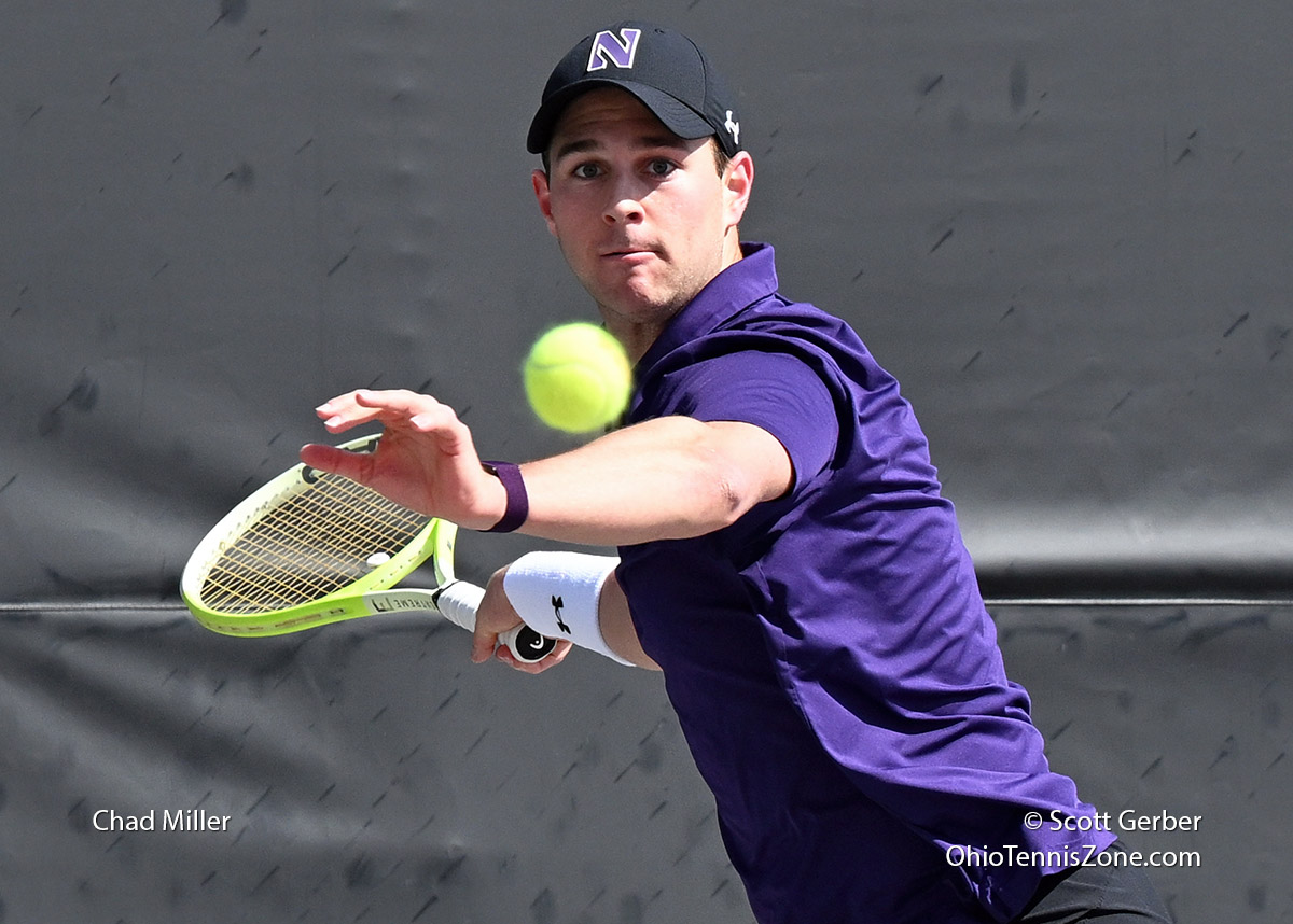 Whenever possible, OTZ takes photos at college matches that include Ohio high school players. In yesterday's men's match, Sycamore's and Northwestern's Chad Miller competed. Miller played Court 1 for Sycamore's 2022 championship team. Click for Miller's OTZ Player Profile.