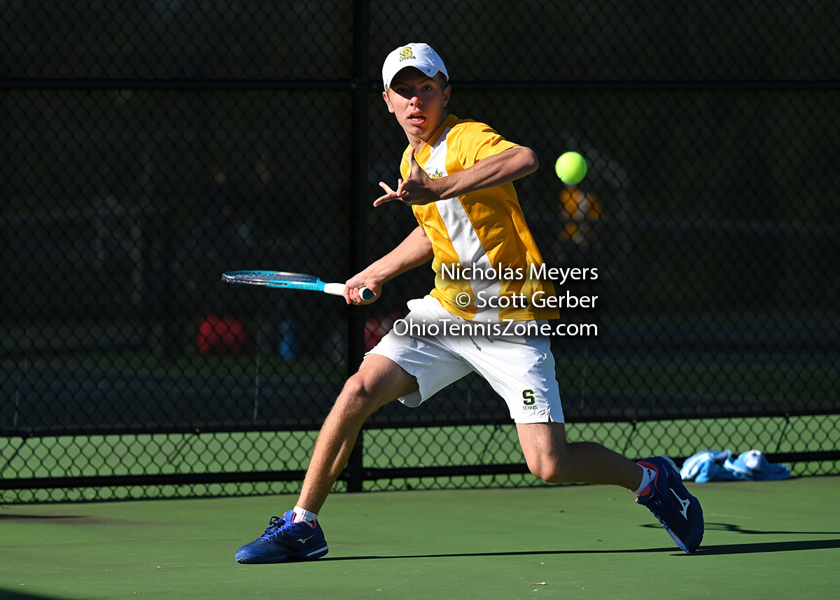 Sycamore's Nicholas Meyers is hoping for a State Championship this year. It may happen in singles, with the Sycamore team, or possibly both. (Neither is also a possibility, but let's not go there.) States is a familiar place for him. Meyers placed third last year in singles. He was a State Doubles Finalist in 2022, and he placed fourth in dubs in 2021.